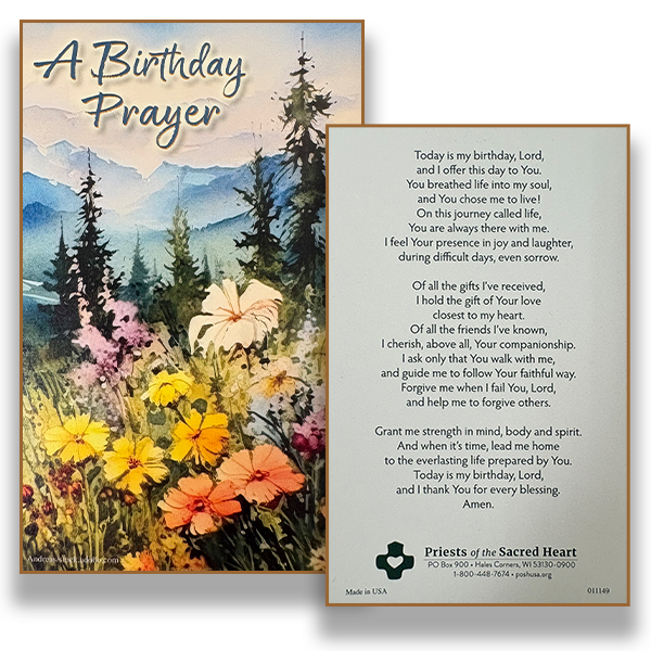 Prayer Card with A birthday prayer on the back.